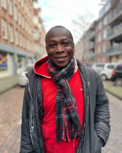 ‘Over contacten door de krant kan ik eindeloos vertellen. Zo zijn er studenten die in een studentenhuis aan het Zon’s Hofje aan de Prinsengracht wonen en elk jaar met kerst geld voor mij inzamelen. Als ze het bedrag overhandigen maken we altijd een groepsfoto. En er was een vrouw die jarenlang de krant bij me kocht. Ze vroeg me ooit wanneer ik jarig was. Op mijn verjaardag stond ze opeens voor me en nam ze me mee naar een restaurant.’